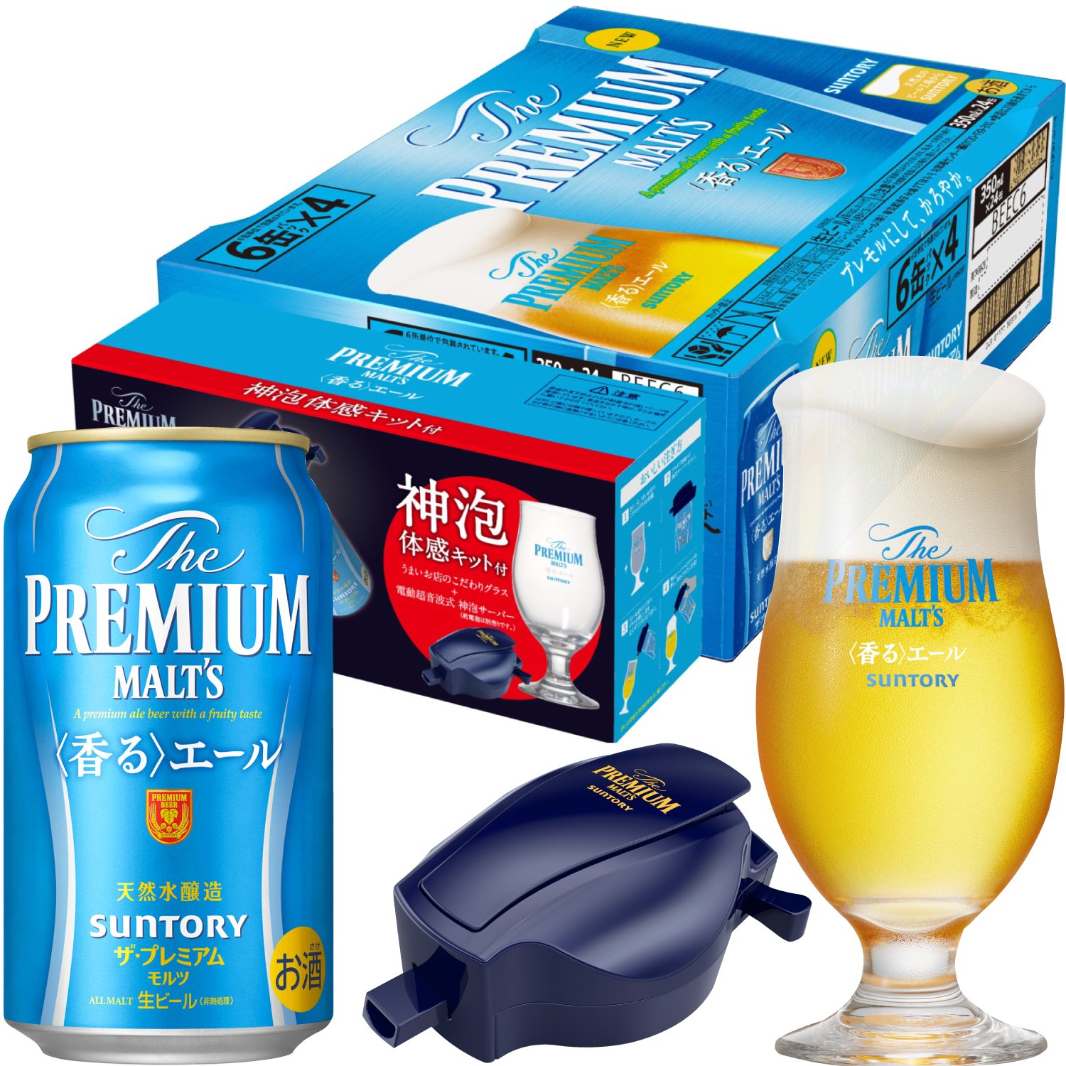 ![]() | ザ・プレミアム・モルツ 香るエール 350ml×24本 神泡体感キット 税込*,***円 [送料無料 ・サントリー「ザ・プレミアム・モルツ〈香る〉エール」から、きめ細やかでクリーミーな「神泡」が楽しめる〈神泡体感キット〉が数量限定登場。スーパープレミアムコーティングの「泡もち1.2倍グラス」と「超音波式神泡サーバー」各1個を内包した24缶ケース。2018年の父の日は6月17日(日)です。父の日は、もらって嬉しい定番のビールギフトを贈りませんか。購入画面にてギフト設定にすると、ラッピングした状態でお届け可能。 |