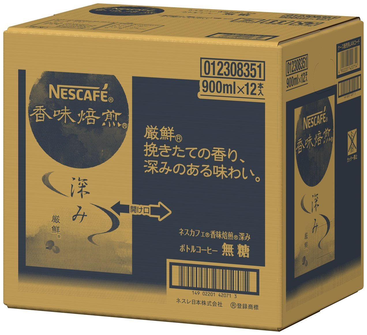 ![]() | ネスカフェ 香味焙煎 深み ボトルコーヒー 無糖 900ml×12本 税込*,***円 [送料無料 ・選び抜かれたこだわり豆に、最盛期のみに収穫される色鮮やかな手摘み厳鮮豆でひき立つ芳醇な香り、香ばしさ、コクが折り重なった“深み”のある味わいをお楽しみください。。[製品詳細] |