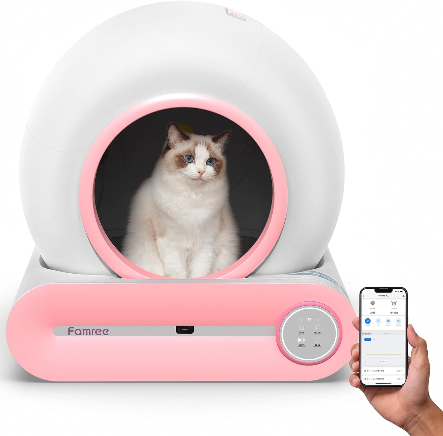 ![]() | Famree 猫 トイレ 自動トイレ 税込*,***円 [送料無料 ・当店の猫トイレは、特許を取得したドームとゴミコンテナの一体設計を採用しています。猫トイレの台座の隅には4つの重力センサーが搭載され、猫がトイレから離れたことを検知した3分後(時間調節可)に自動清掃が開始されます。愛猫の体重推移はもちろん、トイレの時間・回数や所要時間を計測・記録することが可能です。 |